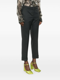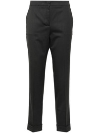 cropped wool trousers Highlights - Charcoal grey - Wool blend - Twill weave - Faux pocket detail - Pressed crease - Low-rise - Concealed front button, hook and zip fastening - Two side slash pockets - Tapered leg - Turn-up hem - Tailored cut Made in Italy Composition Wool 98%, Elastane 2% SIZE & FIT Model measurements Height 5 ft 10 in(1.77 m) Bust/Chest 32.28 in(82 cm) Hips 35.03 in(89 cm) Waist 25.19 in(64 cm) FittingInformation Designed with a cigarette cut, these trousers allow for a close fit at the waist and offer an unrestricted fit through to the ankle Cropped in length Made from a midweight stretch fabric, this piece offers elasticity and flexibility when worn This piece fits true to size – take your usual size