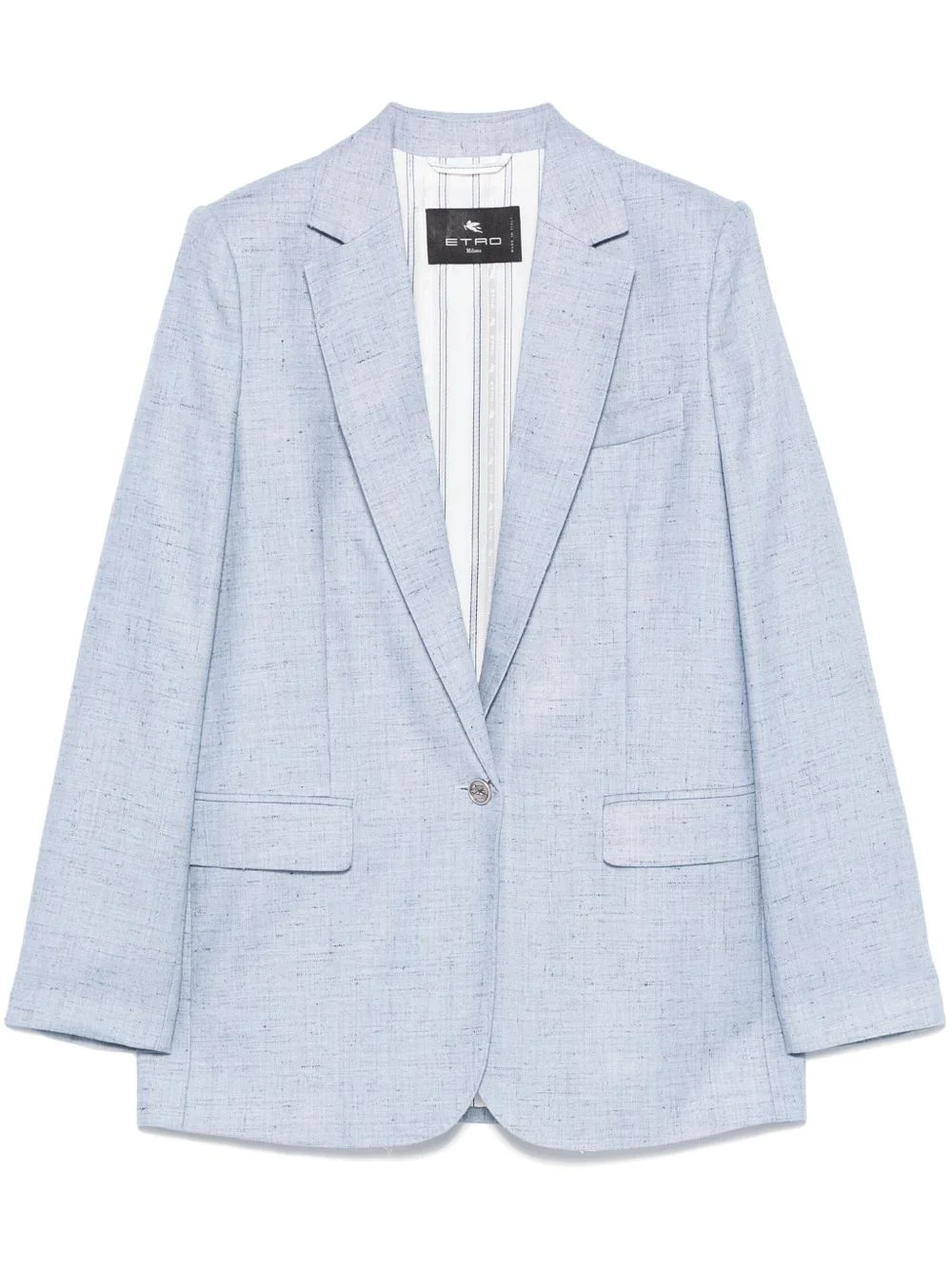 speckled blazer Highlights - Sky blue - Front button fastening - Buttoned cuffs - Shoulder pads - Two front flap pockets Made in Italy Composition Wool 100% SIZE & FIT Model measurements Height 5 ft 11 in(1.8 m) Bust/Chest 31.49 in(80 cm) Hips 36.61 in(93 cm) Waist 24.4 in(62 cm) FittingInformation Designed for a slim fit that sits just away from the body offering a close yet comfortable fit The internal shoulder pads offer a structured shape Made from a midweight non-stretch fabric