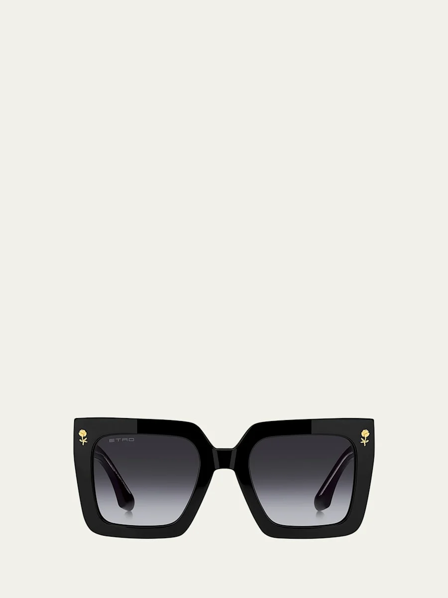 Etro square acetate sunglasses Eye/bridge/temple (in mm): 5222145 Gradient lenses Saddle nose bridge Thick, tapered arms Logo printed at the temples Acetate Wipe clean 100% UVA/UVB protection Imported