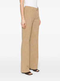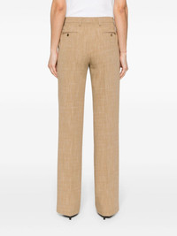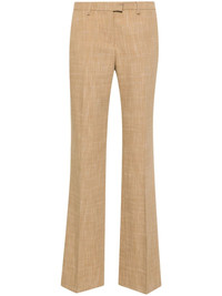 slub-texture tailored trousers Highlights - Light brown - Slub texture - Melange effect - Belt loops - Two diagonal pockets to the sides - Two rear button-fastening jetted pockets - Pressed crease - Straight leg - Concealed front button, hook and zip fastening Made in Italy Composition Viscose 86%, Polyester 14% SIZE & FIT Model measurements Height 5 ft 11 in(1.8 m) Bust/Chest 33.07 in(84 cm) Hips 37.4 in(95 cm) Waist 25.19 in(64 cm) FittingInformation Designed for a straight-leg fit, these trousers allow for a close fit at the waist and an unrestricted, comfortable fit over the leg Made from a midweight non-stretch fabric This piece fits true to size – take your usual size Washing instructions Dry Clean Only