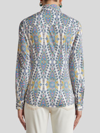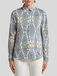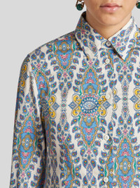 Shirt with figure-hugging fit that accentuates the waist. This stretch cotton poplin model features a decorative medallion and Paisley print all over. • Slim fit • Classic collar • Long sleeves • Working cuffs • Branded-button closure • Made in Italy • The model is 5' 9½" (177 cm) tall and wears a size 40 PRODUCT DETAILS • 97% cotton, 3% elastane