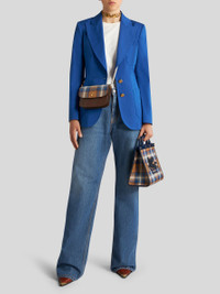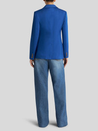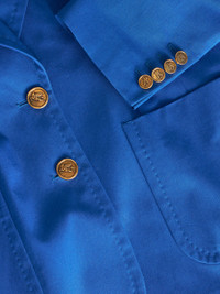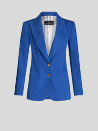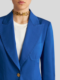 Single-breasted jacket in stretch cotton gabardine. This piece features peak lapels and metal buttons with a raised Pegaso logo. • Regular fit • Peak lapels • Single-breasted closure • Metal buttons with raised Pegaso logo • Breast patch pocket • Side slip pockets • Working cuffs • The model is 70.07" (178 cm) inches tall and wears a size 40 (IT) • Made in Italy PRODUCT DETAILS • 97% cotton, 3% elastane • Lining: 52% viscose, 48% acetate