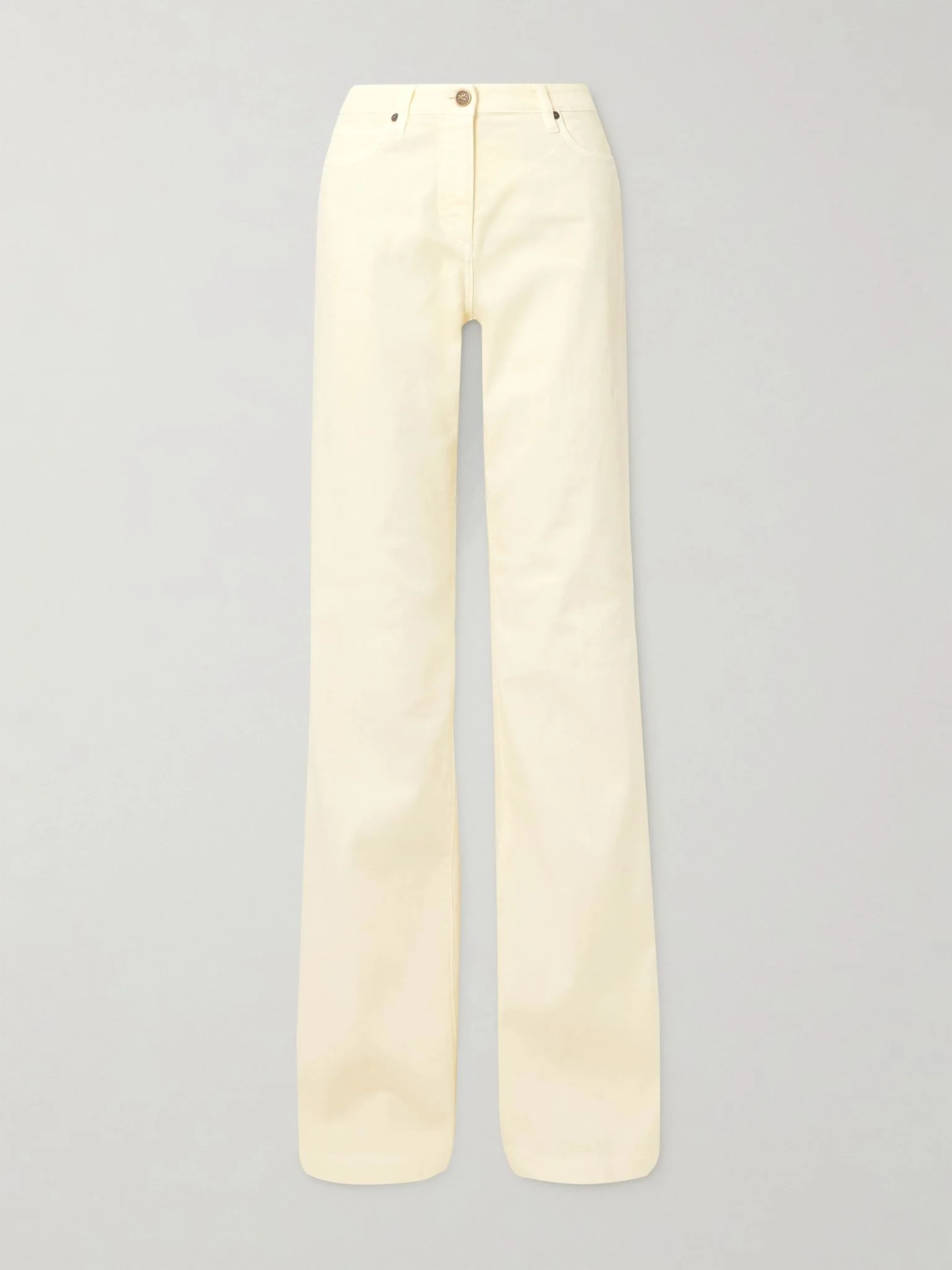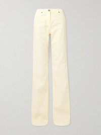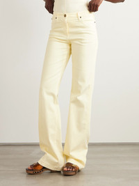 Etro's jeans nod to classic '70s shapes – note the low rise, flared legs and floor-pooling cuffs. They're made from cream denim and have a five-pocket construction and signature 'Pegaso' logo on the button. Wear yours with the label's paisley designs. Size & Fit - Fits true to size, take your normal size - Low-rise, intended for a slim fit with a flared hem - Mid-weight, non-stretchy fabric - Size 25 jeans have an inside leg of 36.5"/ 93cm - Model is 177cm/ 5'10" and is wearing a size 25 Model measurements: - Bust: 80cm/ 31.5" - Waist: 60cm/ 23.5" - Hip: 89cm/ 35" Details & Care - Cream denim - Button and concealed zip fastening at front - 98% cotton, 2% elastane - Machine wash