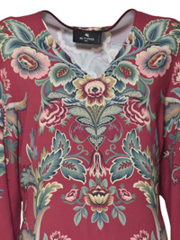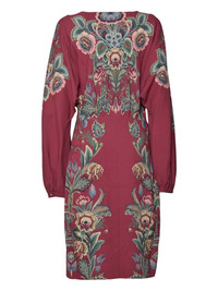V-neck floral dress Highlights - Red - Floral print - V-neck - Long sleeves Imported Composition Cotton 94%, Elastane 6% Washing instructions Read Manufacturer Guidelines