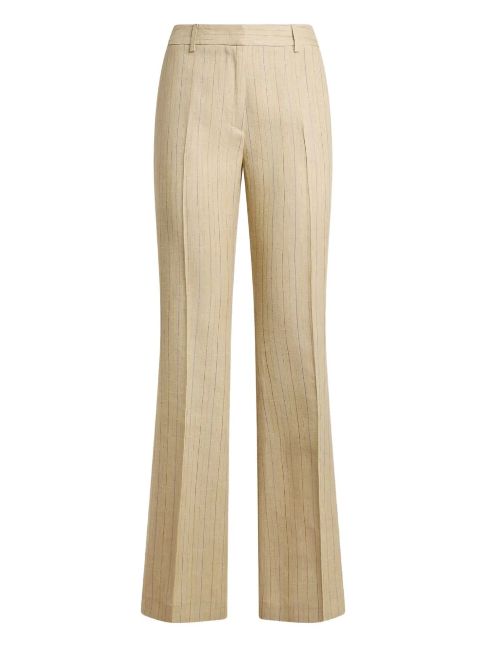 striped bootcut trousers Highlights - Beige - Striped - Bootcut - Belt loops - Side seam pockets - Back pockets Made in Italy Composition Linen/Flax 100% Washing instructions Read Manufacturer Guidelines