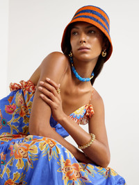 Etro's bucket hat will add a vibrant touch to your warm-weather wardrobe. It's woven from raffia and patterned with contrasting stripes in orange and navy. Details & Care - Orange and navy raffia - 100% raffia - Spot clean