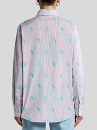 Pure cotton jacquard shirt enhanced by vertical stripes topped with small fil coupe Paisleys. The buttons with ETRO logo give the design a customised touch. • Boyfriend fit • Classic collar • Long sleeves • One-button working cuffs • Branded-button closure • Made in Italy • The model is 5' 9½" (176 cm) tall and wears a size 40 PRODUCT DETAILS • 100% cotton