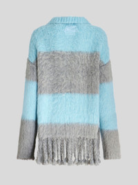 Striped brushed knit jumper/polo dress from the Women's Fall-Winter 2023 Fashion Show collection, featuring a fringe. PRODUCT DETAILS • 27% acrylic, 24% alpaca, 22% mohair, 16% polyamide, 11% wool • Regular fit • Shirt collar • Button fastening on front • Made in Italy • The model is 178 cm / 70,07 inches tall and wears size 40