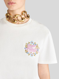 Crewneck T-shirt made from cotton jersey. This model is embellished with a floral motif and an embroidered Pegaso symbol and ETRO logo on the chest. PRODUCT DETAILS • 100% cotton • Regular fit • Crewneck • Short sleeves • Made in Italy • The model is 178 cm / 70.07 inches tall and wears a size 40 (IT)