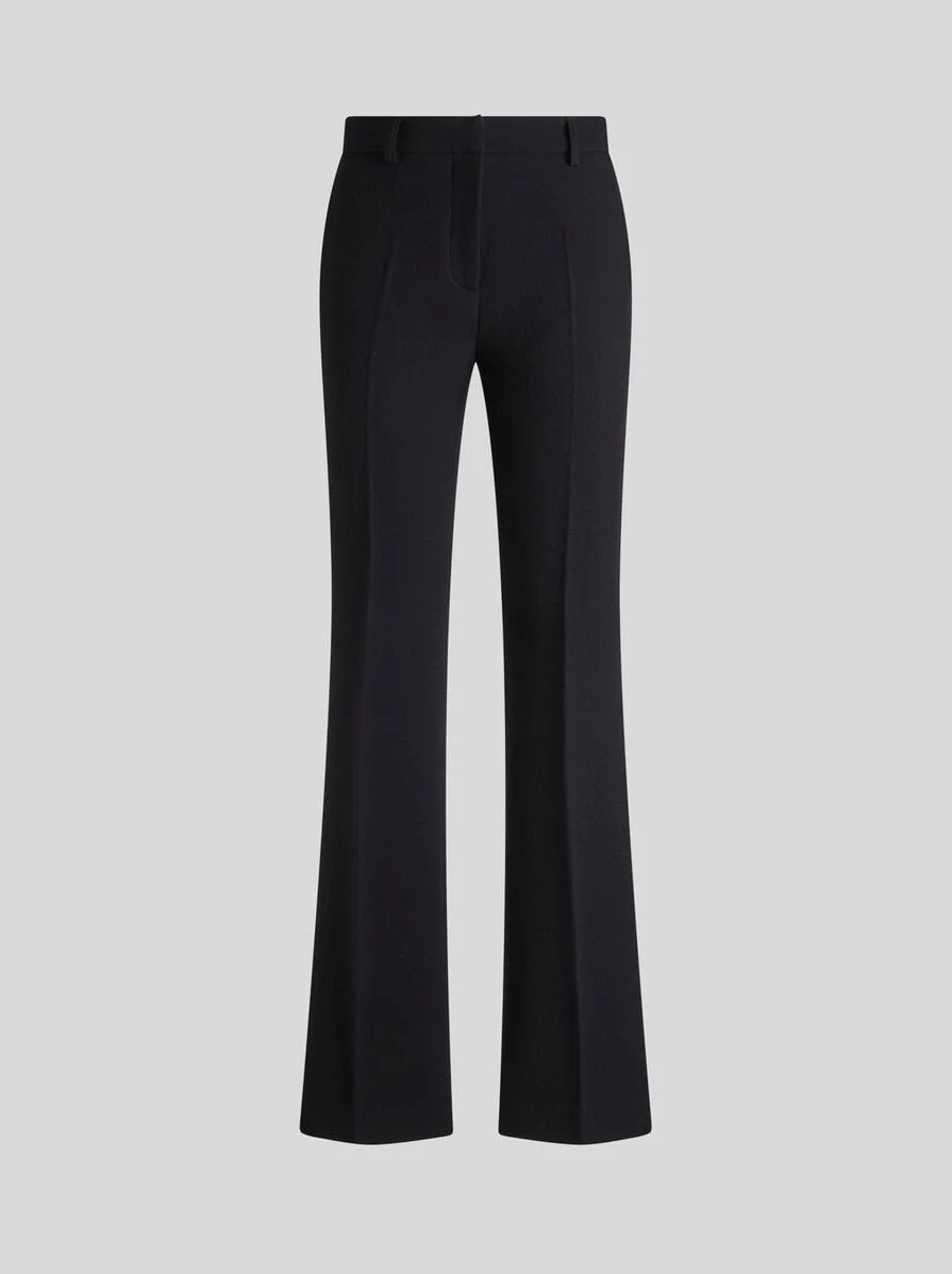 Tailored bootcut trousers in plain-coloured wool fabric. This model is complete with pressed creases down the middle on the front and back. • Regular fit • Welt side slip pockets • Rear button-through welt pockets • Concealed closure • Made in Italy • The model is 5' 9½" (176 cm) tall and wears a size 40 PRODUCT DETAILS • 100% wool