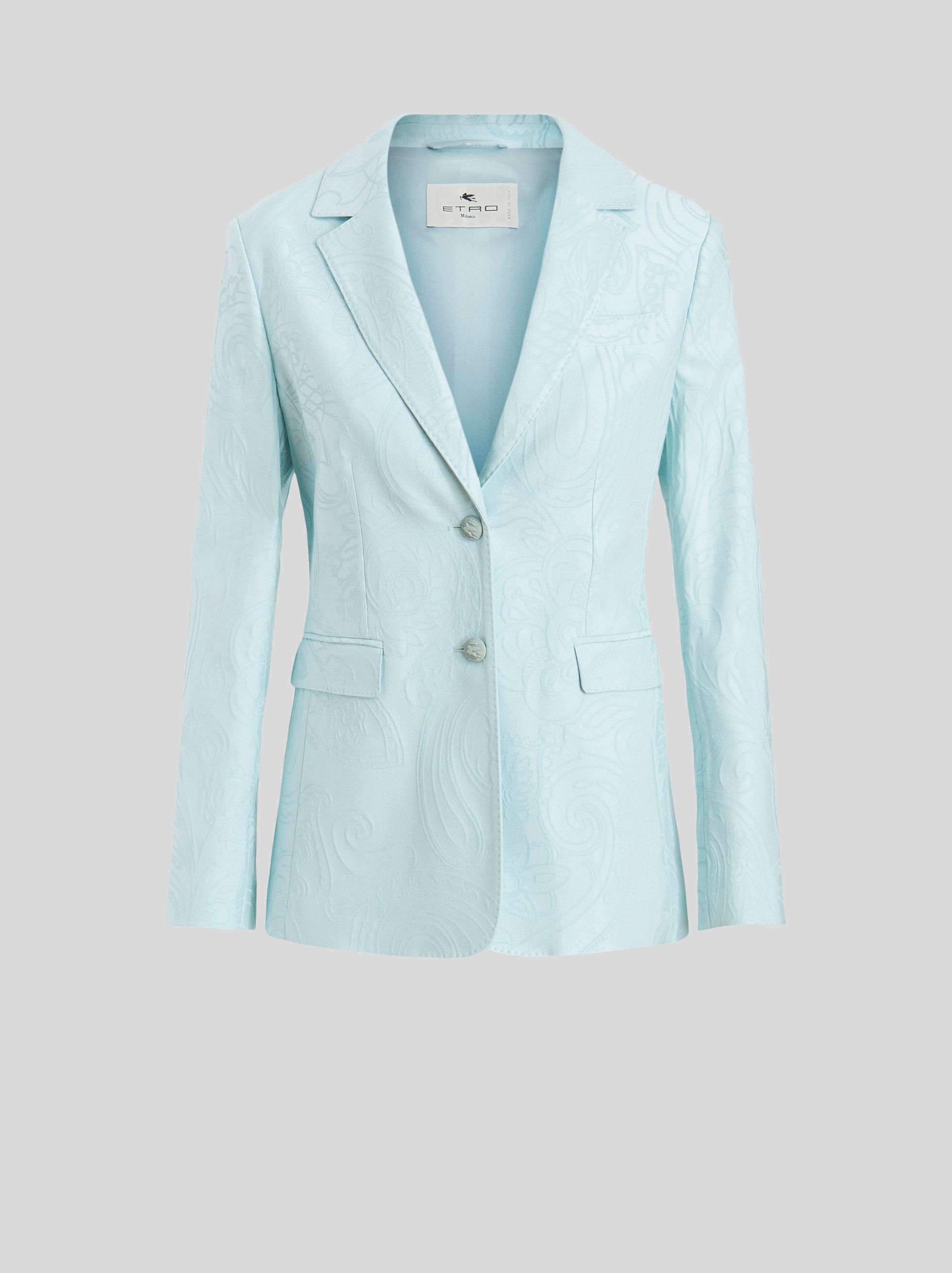 Tailored mixed cotton jacquard jacket with all-over ton-sur-ton Paisley patterns. PRODUCT DETAILS • Exterior: 63% cotton, 35% viscose, 2% elastane • Lining: 57% viscose, 43% polyester • Regular fit • Single-breasted fastening • Pegaso buttons • Piped breast pocket • Front pockets with flap • Rear slits • Made in Italy • The model is 178 cm tall and wears size 40