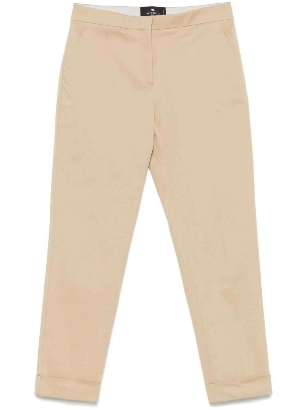 tailored trousers Highlights - Beige - Concealed front button, hook and zip fastening - Two side inset pockets - Two rear welt pockets - Turn-up cuffs Made in Italy Composition Cotton 97%, Elastane 3% SIZE & FIT Model measurements Height 5 ft 11 in(1.8 m) Bust/Chest 32.67 in(83 cm) Hips 36.22 in(92 cm) Waist 24.4 in(62 cm) FittingInformation Designed with a cigarette cut, these trousers allow for a close fit at the waist and offer an unrestricted fit through to the ankle Cropped in length Made from a midweight stretch fabric, this piece offers elasticity and flexibility when worn