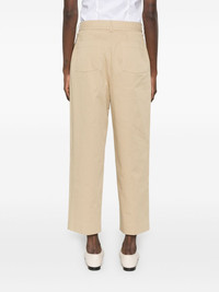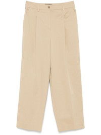 tailored trousers Highlights - Beige - Concealed fly and button fastening - Belt loops - Two side inset pockets - Two rear patch pockets Made in Italy Composition Cotton 97%, Elastane 3% SIZE & FIT Model measurements Height 5 ft 11 in(1.8 m) Bust/Chest 32.67 in(83 cm) Hips 36.22 in(92 cm) Waist 24.4 in(62 cm) FittingInformation Designed with a wide-leg cut, these trousers allow for a close fit at the waist and offer a loose and roomy fit over the leg Made from a midweight stretch fabric, this piece offers elasticity and flexibility when worn