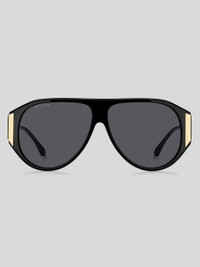 Supersized shapes and precise construction take centre stage in ETRO's "New Tailoring" eyewear line. Exuding modern elegance, these sunglasses combine a softly curved acetate frame with a sleek flat top and enveloping metal temples – subtly visible from the front for an eye-catching effect. ETRO's iconic end tips and distinctive logo details round off this disruptive design, available in a range of unexpected colour combinations. • Lenses with UVA and UVB protection • Fitting: International • Lenses: 2.12 inches ( 53,9 mm), bridge: 0.43 inches (11 mm), temples: 5.51 inches (140 mm) • Made in China PRODUCT DETAILS • Frame: 100% acetate
