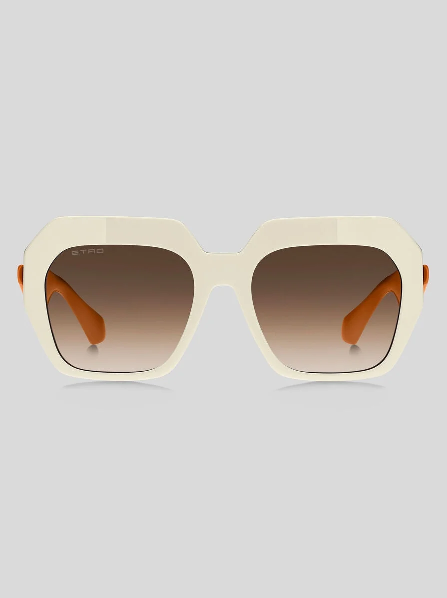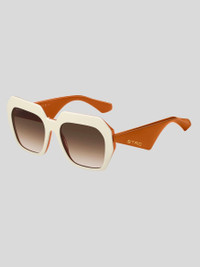 Playful, dynamic and rebellious, the "ETRO Tailoring" eyewear range returns with a renewed edge. These sunglasses explore the collection's theme with their generous volumes and sinuous shapes. Crafted with expert precision from ultra-light acetate, the softly curved profile is complemented by the vintage-inspired triangular temples. The brand's iconic end tips and subtle logo lettering transcend seasons and trends. • Lenses with UVA and UVB protection • Fitting: International • Lenses: 1.87 inches (47,6 mm) , bridge: 0.75 inches (19 mm), temples: 5.71 inches (145 mm) • Made in China PRODUCT DETAILS • Frame: 100% acetate