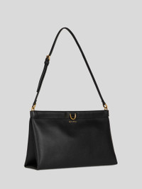 Medium Clutch Talk made from soft plain-coloured leather. This accessory, presented at the Autumn Winter 25 Runway Show, features a magnetic top closure, openable via the outer metal rings, and a thin adjustable shoulder strap. The hot-stamped ETRO logo on the front completes the design. • Dimensions (Width, Height, Depth): 11.8 x 7.5 x 3.9 inches (30 x 19 x 10 cm) • Adjustable shoulder strap • Golden-finish metal accessories • Outer D-rings • Made in Italy PRODUCT DETAILS • Exterior: calfskin • Lining: cowhide