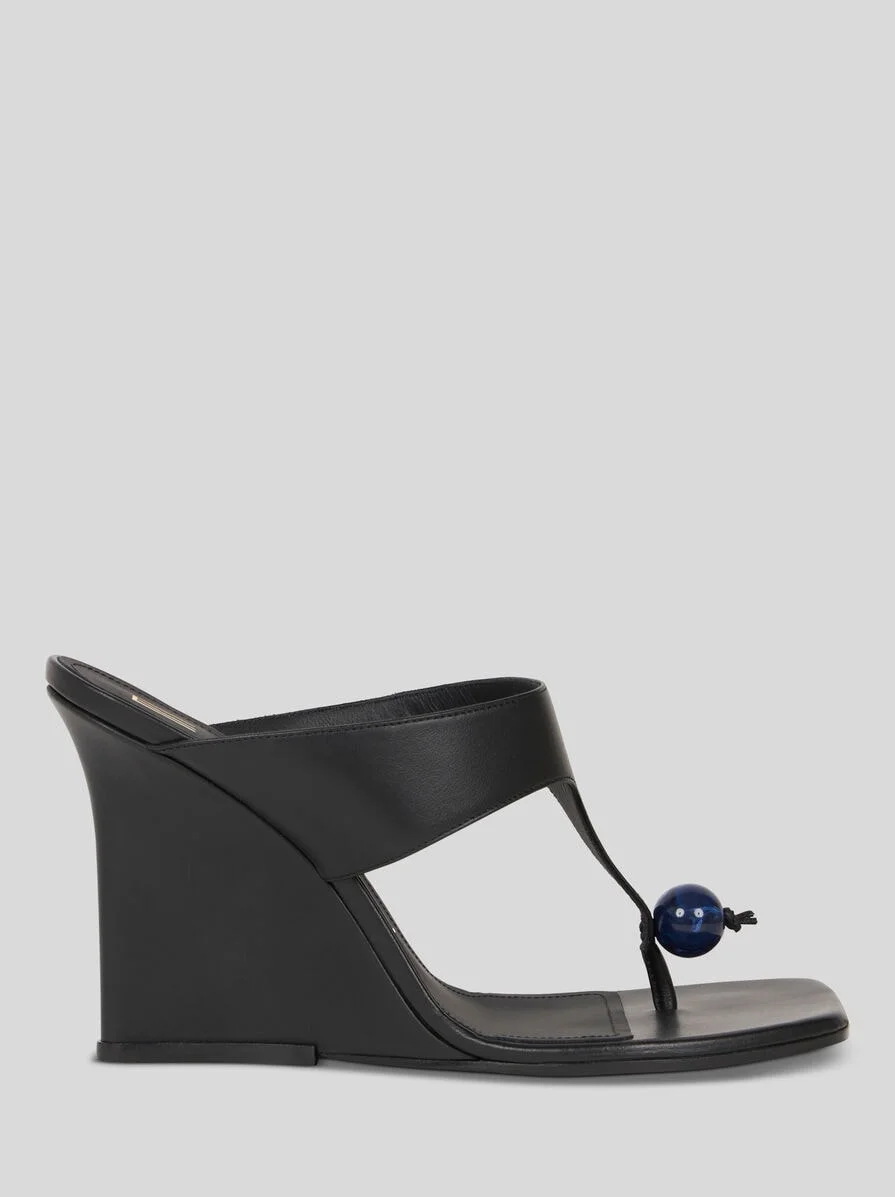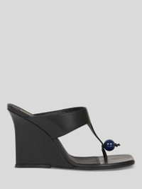 Leather sandals with original wedge and thong-style design. The accessory, complete with a tonal marble on the front, was presented at the Spring-Summer 25 Women's Runway Show. • Wedge height: 3.5 inches (9 cm) • Square toe • Logo-branded insole • Made in Italy PRODUCT DETAILS • Upper: 100% cowhide • Lining: 100% goatskin • Sole: 100% cowhide
