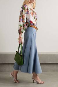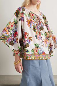 Tie-detailed floral-print cotton and silk-blend voile blouse