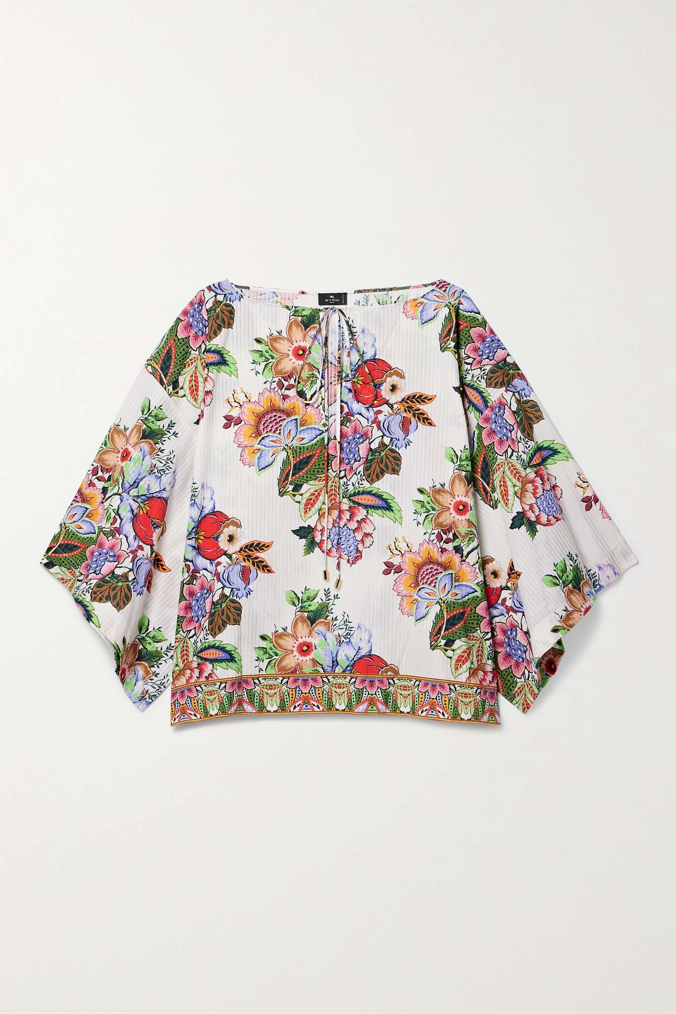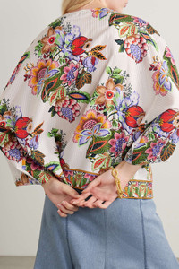 EDITORS'NOTES Etro's blouse is made from cotton and silk-blend voile that's printed with bouquets of vibrant flowers. It has jacquard stripes for subtle interest and texture and fluttery sleeves that add to its bohemian feel. Wear yours as a matching set with the coordinating shorts or with a denim skirt, leaving the front-ties undone. SIZE & FIT - Fits true to size, take your normal size - Intended for a relaxed fit - Lightweight, non-stretchy fabric - Model is 175cm/ 5'9" and is wearing an IT 40 DETAILS & CARE - Multicolored cotton and silk-blend voile - Tie-fastening keyhole at front - 82% cotton, 18% silk - Machine wash