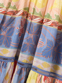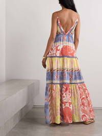 EDITORS'NOTES Etro's maxi dress is patterned with a variety of prints that create a colorful patchwork effect. Cut from airy cotton and silk-blend voile, it has a tiered shape and is trimmed with ladder-like crochet along the triangle cups and skirt. Adjust the side ties to cinch the fit just so. SIZE & FIT Model measurements: - Fits true to size, take your normal size - Designed to be fitted at the bust and waist, loose at the hip - Use the adjustable drawstring to cinch in at the waist - Lightweight, non-stretchy fabric - Model is 175cm/ 5'9" and is wearing an IT 40 - Bust: 79cm/ 31” - Waist: 61cm/ 24” - Hip: 88cm/ 34.5” DETAILS & CARE - Multicolored cotton and silk-blend voile, blue crochet - Slips on - 78% cotton, 22% silk; trim: 100% polyester - Hand wash or dry clean