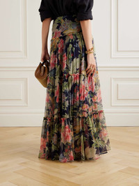 Tiered gathered floral-print silk-crepon maxi skirt