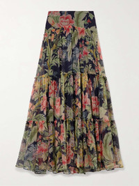 Etro's maxi skirt is decorated with romantic blooms. It’s made from airy silk-crepon and softly gathered throughout the voluminous tiers. Style yours with a floaty blouse. Size & Fit - Fits true to size, however those who are between sizes should take the smaller size - Maxi-length, designed to be worn at the waist - Mid-weight, non-stretchy fabric - Model is 175cm/ 5'9" and is wearing an IT 38 Model measurements: - Bust: 78cm/ 31" - Waist: 62cm/ 24.5" - Hip: 92cm/ 36" Details & Care - Multicolored silk-crepon - Concealed hook and zip fastening at side - 100% silk; lining: 100% polyester - Dry clean