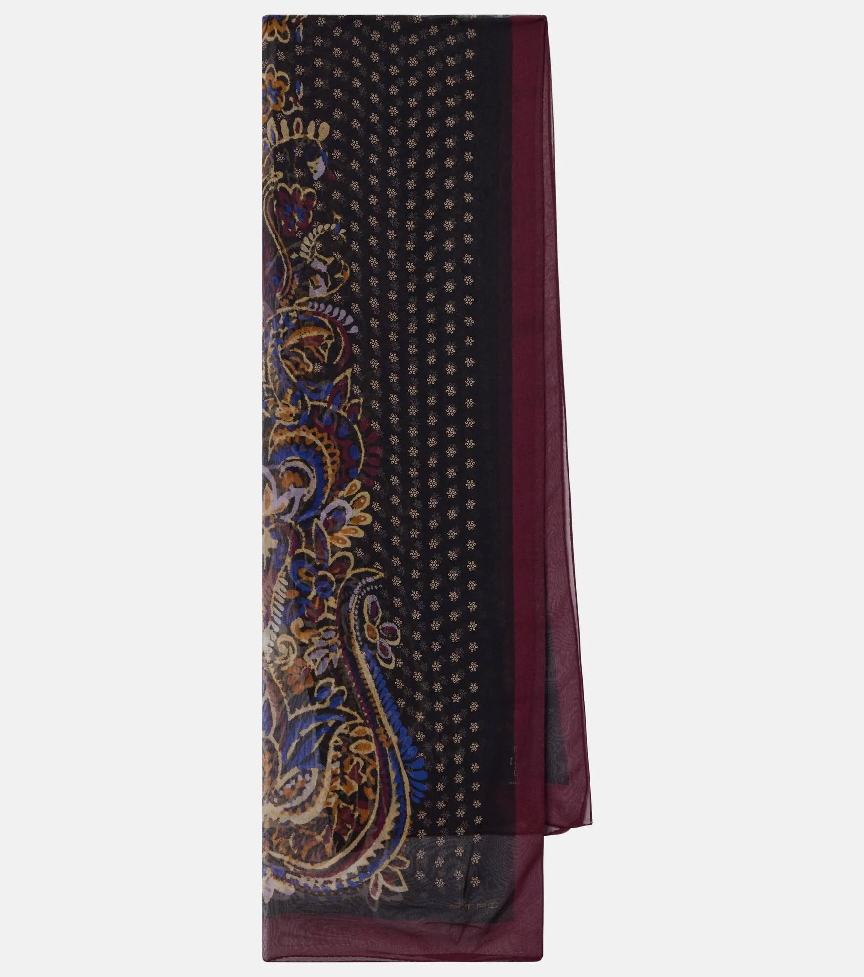Gerolamo and Roberta Etro’s passion for prints and patterns continues to define Etro’s distinctive style. The Tosca scarf is woven from pure silk and adorned with a vibrant, paisley print. Product Details - Material: 100% silk - Care instructions: dry clean - Made in Italy - Designer color name: Stampa F. Do Nero - Item color: black, multicolor - Includes: box - Item number: P01086423 Size & Fit - Length 140cm-55" - Width 45cm-17.5"