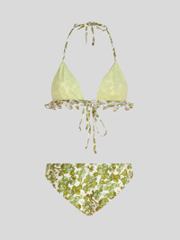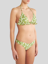 Triangle bikini decorated by a Berry pattern and embellished with mini ruches. PRODUCT DETAILS • Exterior: 72% polyamide, 28% elastane • Regular fit • Triangle bikini • Bottoms with normal waist • Made in Italy • The model is 178 cm / 70 inches tall and wears size 40