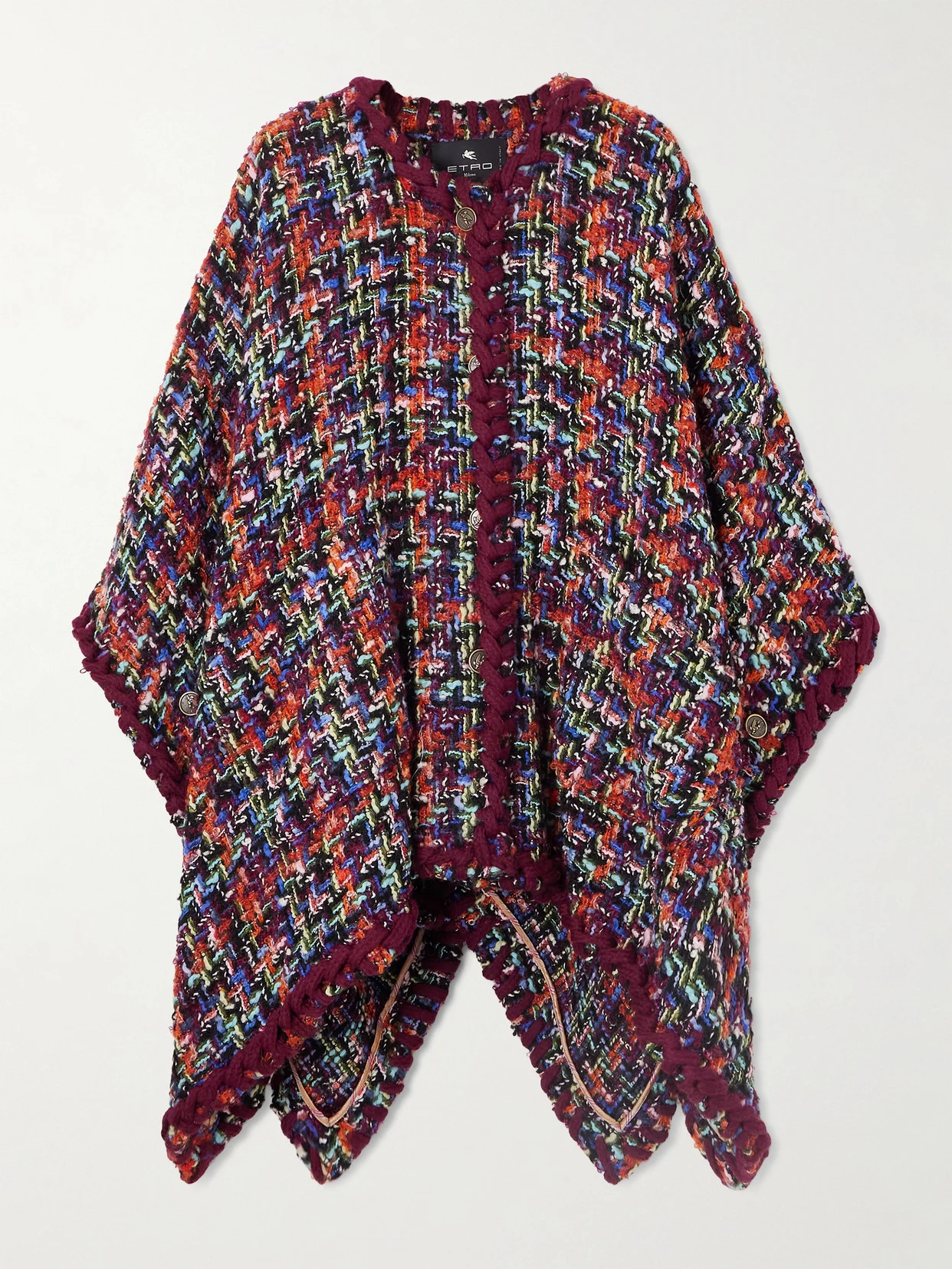 Etro's collections perfectly balance bohemia and glamour. This poncho is made from multicolored tweed that's blended with ample touches of insulating wool and is edged with an artful trim.