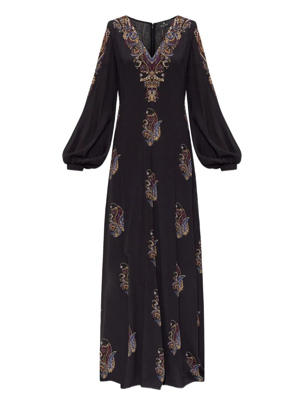 V-neck maxi dress Highlights - Black - Paisley print - V-neck - Long sleeves - Maxi length Made in Italy Composition Viscose 100% Washing instructions Read Manufacturer Guidelines