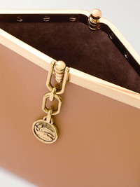 EDITORS'NOTES Etro's signature 'Vela' bag is defined by its unique curved top - upon opening, it extends to a generous diamond shape so you can easily reach in and find your phone, cardholder, keys or lip-gloss. This small version is crafted from smooth leather and comes with a detachable top handle and shoulder strap, allowing for a variety of carrying options. Protective feet at the base keep it from falling or getting scratched when you place it down. SIZE & FIT This item’s measurements are: - Height: 15cm / 5.9in - Width: 21cm / 8.3in - Depth: 10cm / 3.9in DETAILS & CARE - Camel leather (Calf) - Detachable top handle, detachable adjustable shoulder strap - Suede lining - Clasp fastening at top