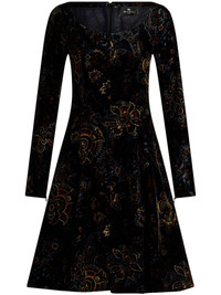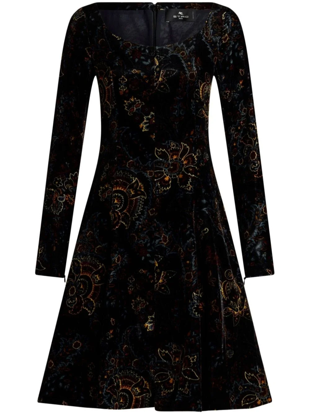 velted printed mini dress Highlights - Black/multicolour - Velvet - Scoop neck - Floral print - Long sleeves - Straight hem Made in Italy Composition Outer: Viscose 82%, Silk 18% Lining: Polyester 100%
