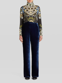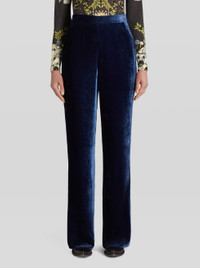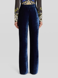 Velvet palazzo trousers. PRODUCT DETAILS • 80% viscose, 20% silk • Regular fit • Elasticated rear waist • Side hidden zip fastening • Slant front pockets • Made in Italy • The model is 178 cm tall and wears size 40 Sku: 222D1920706210200