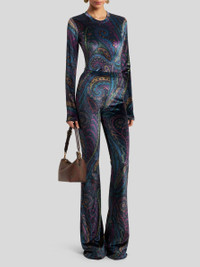 Long-sleeved top in soft stretch chenille with all-over multicoloured paisley print. • Slim fit • Crewneck • Long sleeves • Made in Italy • The model is 5' 9½" (177 cm) tall and wears a size 40 PRODUCT DETAILS • 93% polyester, 7% elastane