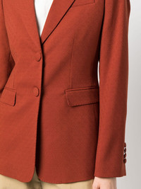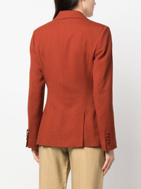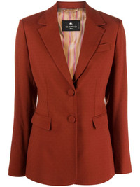 virgin wool-blend jacquard blazer Marco De Vincenzo’s debut collection for ETRO is a study of the Italian brand’s history – specifically the significance of its textiles and patterns. This blazer taps into those roots with its fine virgin wool-blend construction and subtle ornamental medallion jacquard weave. Considered details include a striped satin lining and self-covered buttons. Highlights - Burnt orange - Virgin wool blend - Patterned jacquard - Fabric-covered buttons - Notched lapels - Front button fastening - Chest welt pocket - Two front flap pockets - Long sleeves - Buttoned-cuff sleeves - English rear vents - Satin lining - Straight hem Made in Italy Composition Outer: Virgin Wool 98%, Spandex/Elastane 2% Lining: Viscose 52%, Acetate 48% SIZE & FIT Model measurements Height 5 ft 10 in(1.78 m) Bust/Chest 31.49 in(80 cm) Hips 36.22 in(92 cm) Waist 25.59 in(65 cm) FittingInformation Designed for a slim fit that sits just away from the body offering a close yet comfortable fit The vented hem offers movement at the rear Made from a midweight fabric This piece fits true to size – take your usual size Washing instructions Dry Clean Only