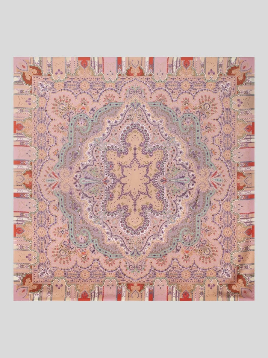 Wool- and silk-blend shawl with placed abstract print and floral detailing. This accessory is complete with a geometric-patterned edge. • Size: 55.1 x 55.1 inches (140 x 140 cm) • Made in Italy PRODUCT DETAILS • 70% wool, 30% silk