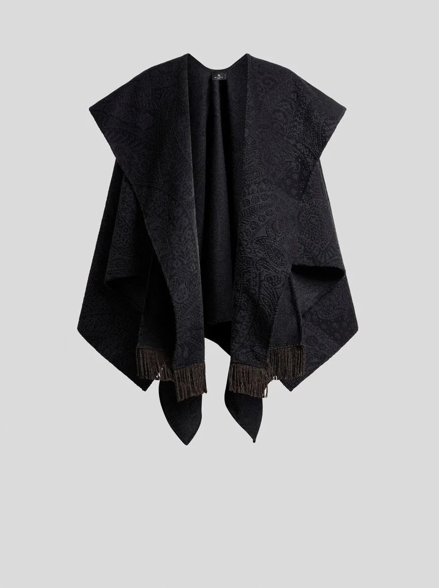 WOOL-BLEND JACQUARD CAPE WITH PAISLEY FOLIAGE MOTIF