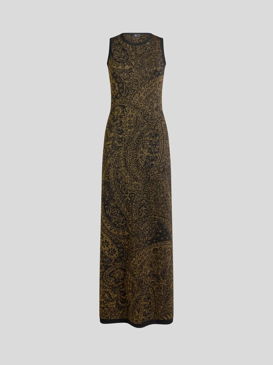 LONG DRESS IN WOOL-BLEND JACQUARD WITH METALLIC PAISLEY MOTIF