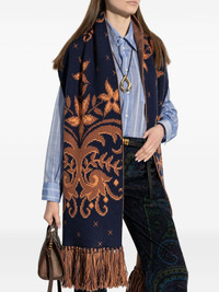 floral-jacquard fringed scarf Highlights - Navy blue - Floral jacquard pattern - Fringed edges - Wraparound style Made in Italy Composition Wool 100% SIZE & FIT Measurement LENGTH 90.55 in(230 cm) WIDTH 13.38 in(34 cm)