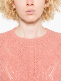 wool sweater Highlights - Peach pink - Crew neck - Long sleeves - Ribbed cuffs and hem - Open knit Made in Italy Composition Wool 100% SIZE & FIT Model measurements Height 5 ft 9 in(1.75 m) Bust/Chest 34.64 in(88 cm) Hips 36.61 in(93 cm) Waist 26.37 in(67 cm) FittingInformation Designed for a relaxed fit, this piece allows for comfort and movement when worn The ribbed hem offers a close, comfortable fit Made with a midweight knit, this piece offers some stretch
