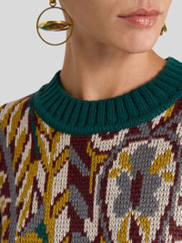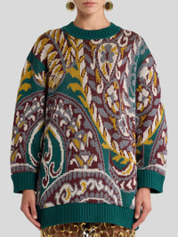 Pure wool crewneck sweater with all-over Paisley jacquard motif. Completing the design are the ribbed collar, cuffs and hem. The item was presented at the Autumn-Winter 25 Runway Show. • Easy fit • Crewneck • Long sleeves with dropped shoulder • Made in Italy • The model is 5' 9½" (176 cm) tall and wears a size 40 PRODUCT DETAILS • 100% wool