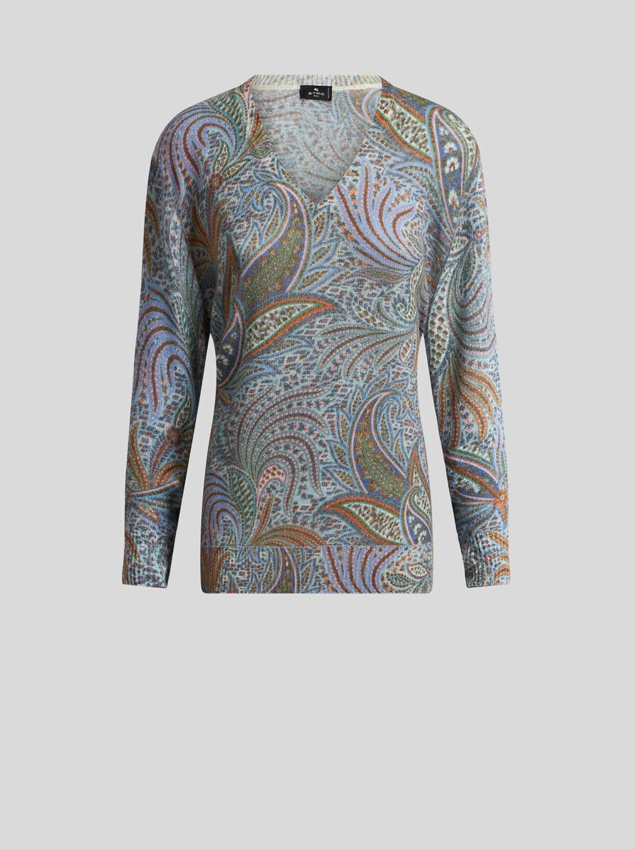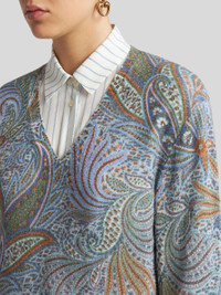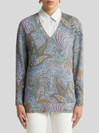 Pure wool V-neck sweater with foliage print all over. Completing the garment are the ribbed collar, cuffs and hem. • Loose fit • V-neck • Long sleeves • Made in Italy • The model is 5' 9½" (177 cm) tall and wears a size 40 PRODUCT DETAILS • 100% wool