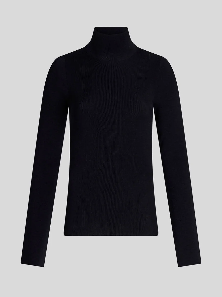 Wool turtleneck sweater, embellished with tone-on-tone embroidered Pegaso symbol and ETRO logo on the back. • Regular fit • Turtleneck • Long sleeves • Made in Italy • The model is 5’10” (178 cm) tall and wears a size 40 (IT) PRODUCT DETAILS • 100% wool