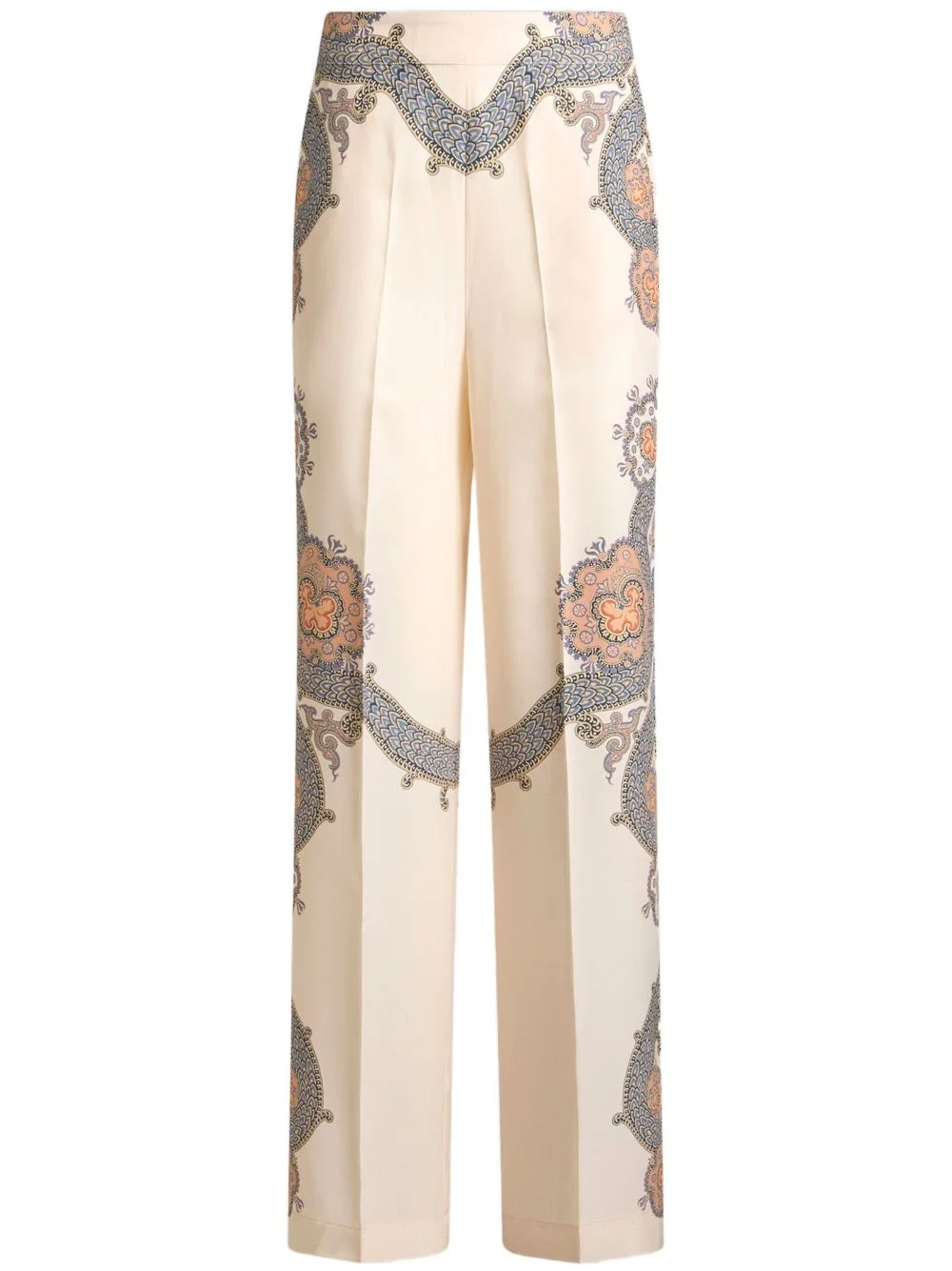 Year of Snake silk palazzo trousers Highlights - Beige - Pressed crease - Paisley print - Straight leg Made in Italy Composition Silk 100%