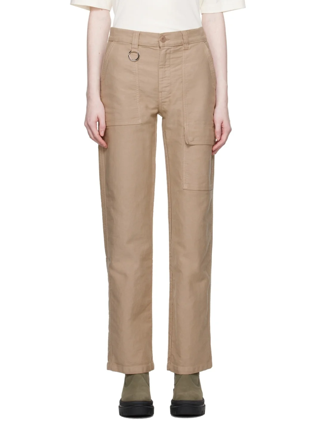 Organic cotton canvas trousers. · Belt loops and keyring at waistband · Four-pocket styling · Zip-fly · Flap pocket at leg · Logo-engraved silver-tone hardware Supplier color: Dyed sand used 100% cotton. Made in Tunisia 232647F087000
