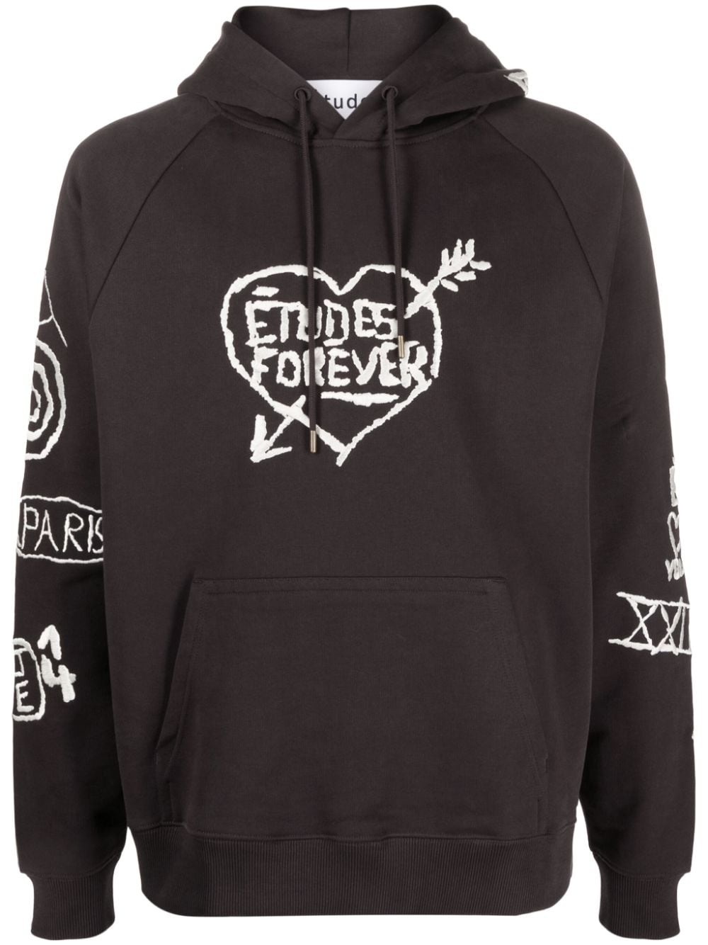 graffiti-embroidery organic cotton hoodie Highlights - Cedar brown/white - Organic cotton - Jersey texture - Embroidered heart graffiti to the front - Embroidered graffiti to the rear - Embroidered graffiti at the sleeve - Long raglan sleeves - Ribbed cuffs and hem - Drawstring hood - Front pouch pocket - When buying this unisex item, keep in mind that it is graded in standard men's sizing. Imported Composition Organic Cotton 100% SIZE & FIT Model measurements Height 6 ft 2 in(1.87 m) Bust/Chest 36.61 in(93 cm) Hips 35.03 in(89 cm) Waist 27.95 in(71 cm) FittingInformation This unisex piece is designed for a loose fit whether you usually select women's or men's sizes Washing instructions Machine Wash