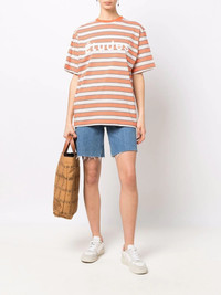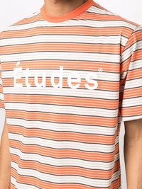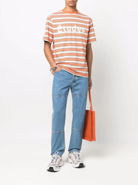 logo-print striped T-shirt Highlights - Deep-orange/bright-white cotton logo-print striped t-shirt from etudes featuring logo print to the front, horizontal stripe pattern, round neck and short sleeves. Imported Composition Cotton 100% SIZE & FIT Model measurements Height 5 ft 11 in(1.8 m) Bust/Chest 31.49 in(80 cm) Hips 35.43 in(90 cm) Waist 24.4 in(62 cm) FittingInformation This piece is unisex. Please take care when selecting your size Cut for a relaxed fit for both men and women Made with a mid-weight fabric