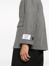 Plane Fannel single-breasted blazer Highlights - Medium grey - Virgin wool blend - Dart detailing - Notched lapels - Front button fastening - Long sleeves - Buttoned cuffs - Chest welt pocket - Two front flap pockets - When buying this unisex item, keep in mind that it is graded in standard men's sizing. Imported Composition Lining: Polyester 55%, Viscose 45% Outer: Virgin Wool 88%, Polyamide 12% SIZE & FIT Model measurements Height 5 ft 10 in(1.77 m) Bust/Chest 31.1 in(79 cm) Hips 35.03 in(89 cm) Waist 23.62 in(60 cm) FittingInformation This unisex piece is designed for a loose fit whether you usually select women's or men's sizes The internal shoulder pads offer a structured shape Made from a midweight non-stretch fabric Washing instructions Dry Clean Only