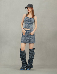 Allover Ishigaki Camouflage Jacquard Fashion Fit Denim Corset