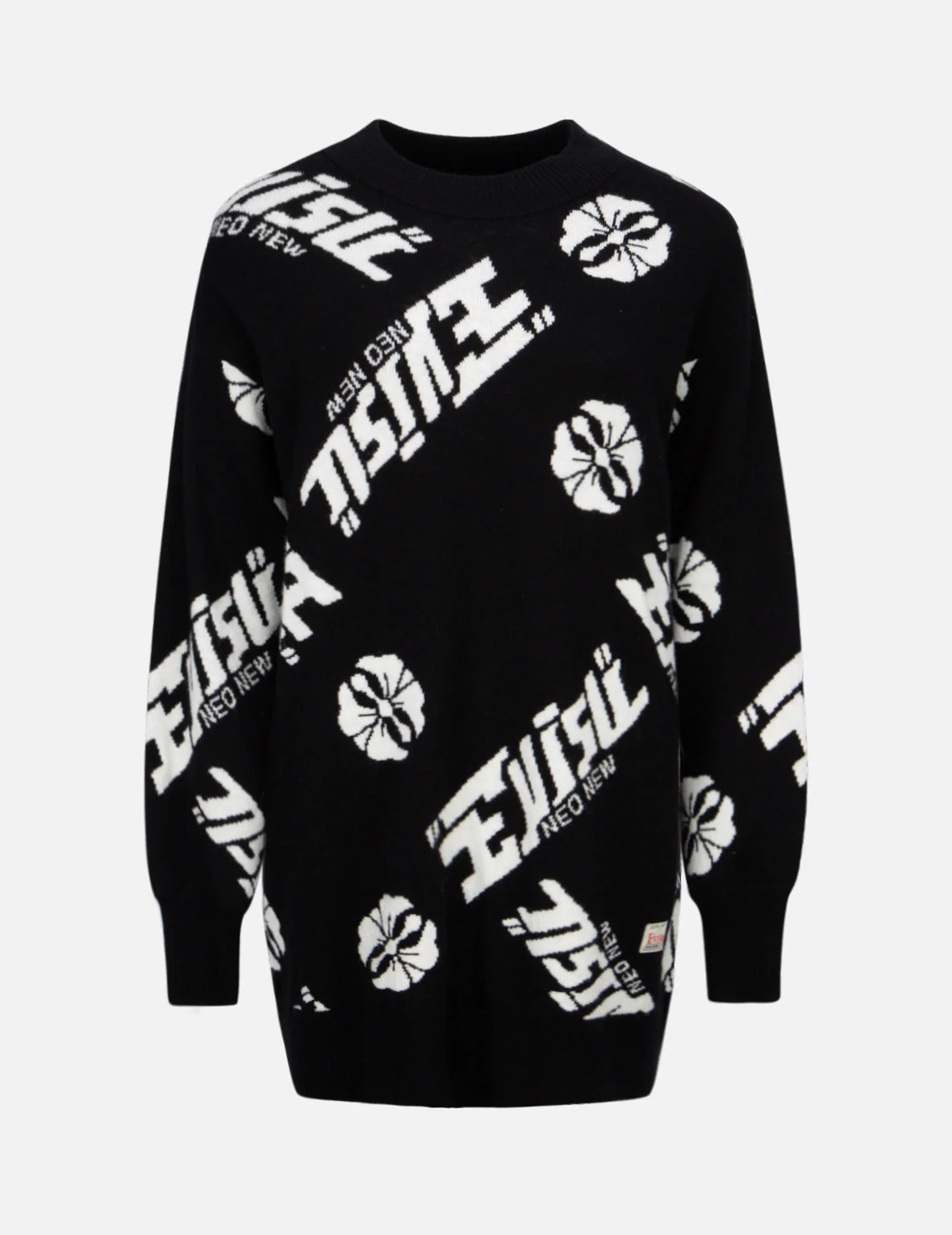 2EAHTW1SR368OSWA This loose fitting sweater comes in allover jacquard of EVISU Neo New logo and Kamon in contrasting palette, channeling a cool style with shorts or skirt and long boots. The piece is crafted from wool blend yarn to give you a warm and comfortable wearing experience. - Loose fit - Allover EIVSU Neo New logo and Kamon jacquard - Crew neck, long sleeves, ribbed trims - Custom Made EVISU Heritage tag - 50% Acrylic, 50% Wool FIT & STYLING: LOOSE CARE DO NOT WASH DO NOT BLEACH DRY FLAT IN THE SHADE COOL IRON ON REVERSE SIDE IF NEEDED STEAM IRONING MAY CAUSE IRREVERSIBLE DAMAGED DRY CLEAN, MILD CYCLE